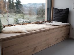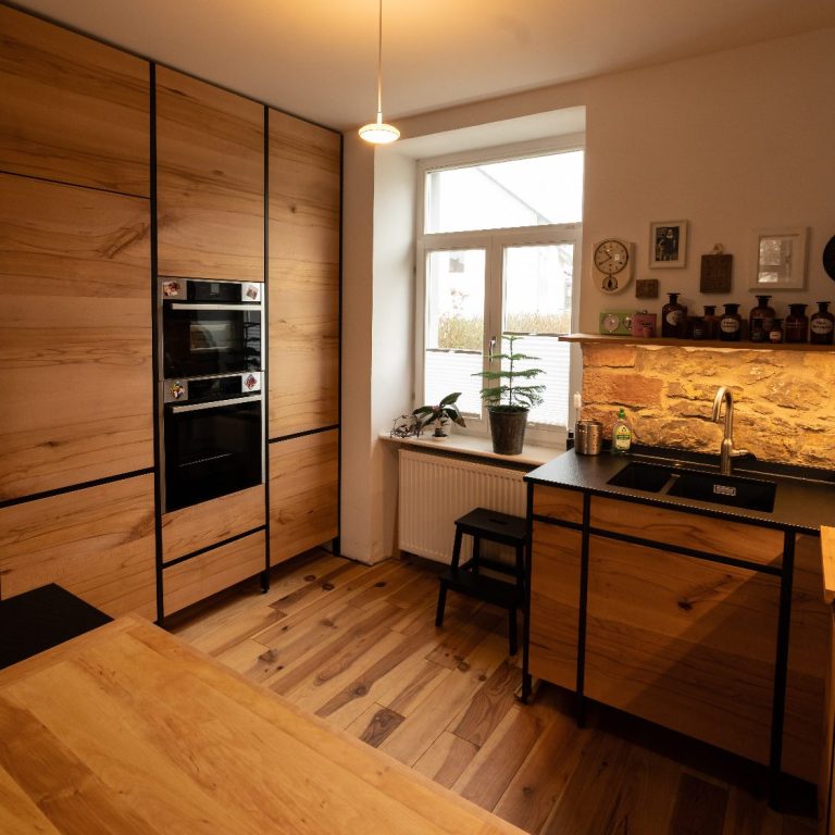 Wichtig ist uns Nachhaltigkeit: Zugunsten der Langlebigkeit verbauen wir ausschließlich hochwertige Materialien, Massivholz aus eigenem Lager und (Holz-)werkstoffe aus Deutschland und der EU.